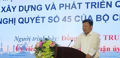 Đồng chí Lê Trung Kiên – Ủy viên Thành ủy, Bí thư Quận ủy thông tin về kết quả thực hiện Nghị quyết Đại hội Đảng bộ quận lần thứ XXIII