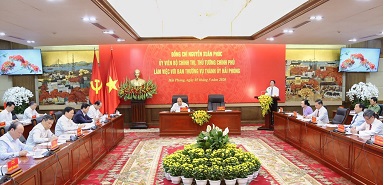 Khẳng định Hải Phòng đã đóng góp quan trọng vào kết quả chung của cả nước, là tấm gương tốt trong khắc phục khó khăn, vươn lên phát triển toàn diện về kinh tế – xã hội, quốc phòng – an ninh, đảm bảo đời sống nhân dân, Thủ tướng chúc mừng, biểu dương kết quả mà Đảng bộ, chính quyền, quân và dân thành phố đạt được, và cũng khẳng định trong thành công đó có sự chỉ đạo sâu sát, kịp thời của Trung ương.