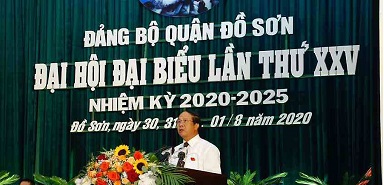 Hôm nay, Đảng bộ quận Đồ Sơn tổ chức Đại hội lần thứ 25, nhiệm kỳ 2020-2025, thay mặt Thành ủy, tôi xin gửi tới các đồng chí đại biểu, các vị khách quý, cùng toàn thể đảng viên và nhân dân quận Đồ Sơn lời chúc sức khỏe. Chúc Đại hội thành công tốt đẹp!