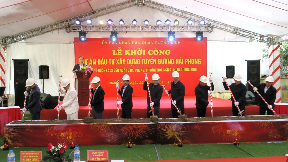 Các đồng chí lãnh đạo thực hiện nghi thức khởi công.Đây là 1 trong 3 công trình Dự án quan trọng được thành phố quan tâm đầu tư kinh phí thực hiện trên địa bàn quận từ năm 2022 đến nay. Sau khi hoàn thành, tuyến đường Hải Phong và tuyến đường Đại Thắng, bộ mặt đô thị phường Hòa Nghĩa sẽ thay đổi, đáp ứng nhu cầu giao thông đi lại thuận tiện của Nhân dân trong quận và khu vực lân cận; từng bước đáp ứng tiêu chí đô thị loại 1 theo Quyết định số 2392 ngày 5/12/2013 của UBND thành phố về việc phê duyệt Quy hoạch chi tiết tỷ lệ 1/2000 quận Dương Kinh đến năm 2025, đồng thời góp một phần vào việc thực hiện thắng lợi mà Nghị quyết Đại hội Đảng bộ quận lần thứ III nhiệm kỳ 2020 – 2025 đề ra.