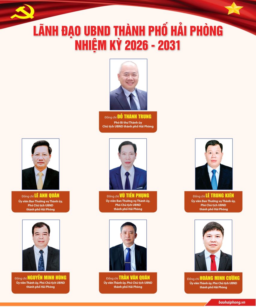 Thời gian: 25/01/2024 09:04 VP đăng tin 25.1.24 Những bài viết liên quan22/04/2026 23:53Phó Chủ tịch UBND thành phố Lê Trung Kiên chủ trì họp, chỉ đạo một số nội dung về tài sản côngĐọc thêm22/04/2026 19:59Hải Phòng – Kagawa (Nhật Bản) tăng cường liên kết, hướng tới hợp tác đa lĩnh vựcĐọc thêm22/04/2026 19:00Lãnh đạo UBND thành phố Hải Phòng nhiệm kỳ 2026 – 2031Đọc thêm