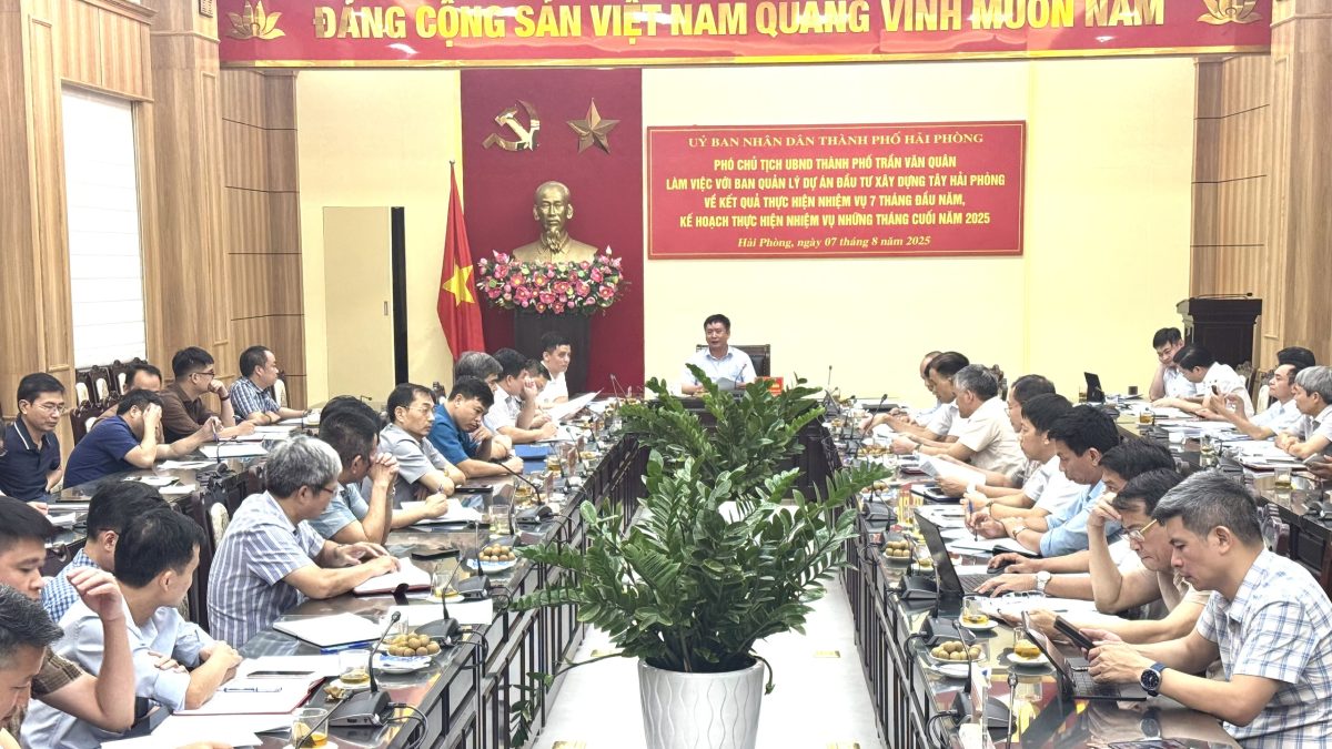 Chiều 7/8, Phó Chủ tịch UBND thành phố Trần Văn Quân làm việc với Ban Quản lý Dự án Đầu tư Xây dựng Tây Hải Phòng về kết quả thực hiện nhiệm vụ 7 tháng đầu năm và thống nhất các giải pháp triển khai nhiệm vụ trọng tâm trong những tháng cuối năm 2025.