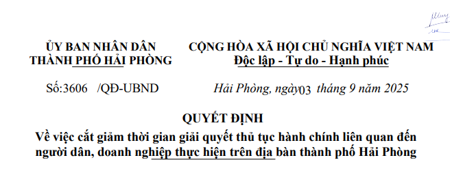 QUYẾT ĐỊNH Về việc cắt giảm thời gian giải quyết thủ tục hành chính liên quan đến người dân, doanh nghiệp thực hiện trên địa bàn thành phố Hải Phòng […]